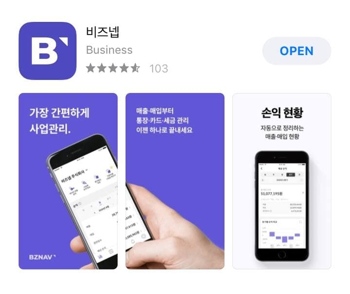 우선 애플 앱스토어 또는 구글 플레이스토어에서 비즈넵을 검색해서 모바일 앱을 설치해주세요.