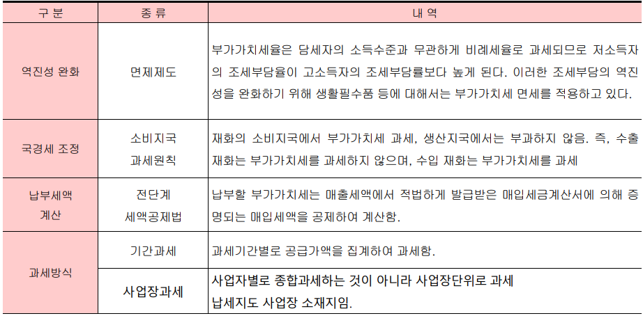우리나라 부가가치세의 특징