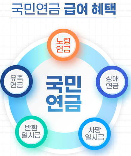 국민연금은 나이가 들거나 장애 또는 사망으로 인해 소득이 감소할 경우 일정한 급여를 지급하여 소득을 보장하는 사회보험으로서 지급받게 되는 급여의 종류는 노령연금(분할연금), 장애연금, 유족연금, 반환일시금, 사망일시금이 있습니다.