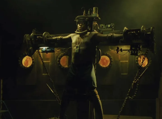 - 설명: 쇠사슬이 자석에 의해 천천히 끌려가며 몸을 찢음.