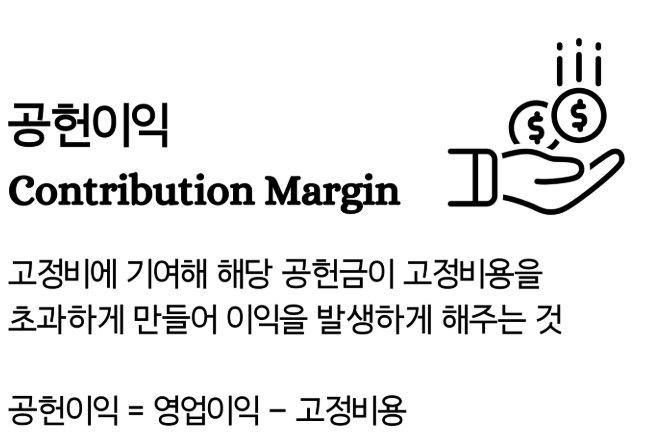 | 공헌이익률 | 공헌이익 ÷ 매출 |