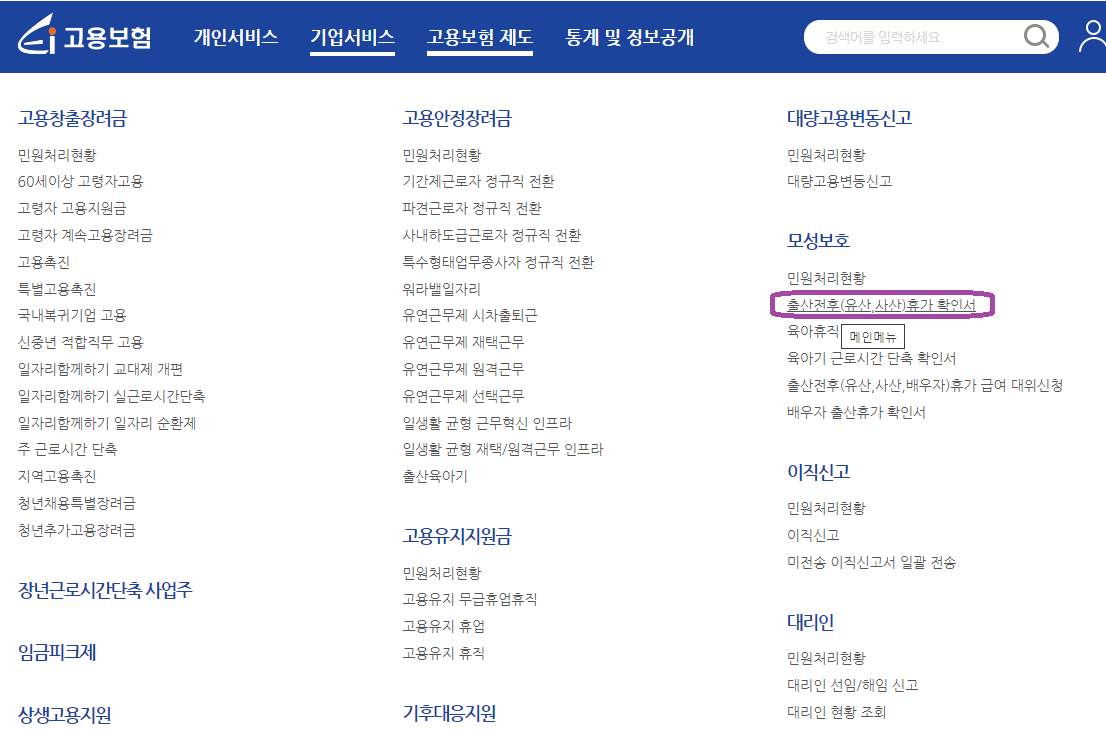 고용보험 제도 - 개인혜택 - 출산전후(유산·사산)휴가