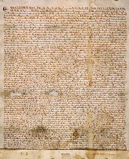 1215년 영국 존 왕의 잇따른 실정과 과도한 조세에 견디지 못한 귀족들이 시민들의 지지를 얻어 그들의 요구사항이 담긴 문서를 왕에게 제시했는데, 이때 존 왕이 서명한 인권헌장을 말한다. 왕 역시 법에 종속된다는 것을 스스로 인정하는 역사적 사건으로 인식되고 있으며, 국법에 따른 과세와 재판의 근거가 이때 마련되었다. 마그나카르타에 언급된 내용은 17세기 국민의 권리와 자유를 보장한 권리청원(1628)과 권리장전(1689)으로 이어지면서 근대 민주주의 헌법의 토대로 자리잡았다. 2010년 상반기 개봉된 '로빈후드' 영화에서도 귀족들의 반발로 수세에 몰린 존 왕이 템스 강변 러니미드에서 귀족들과 시민들이 지켜보는 가운데 서명을 하는 장면이 나온다.