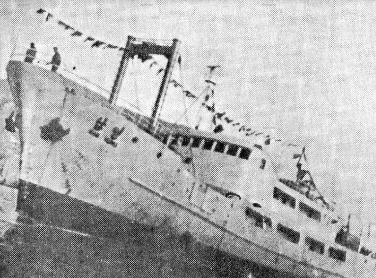 1970년 12월 전남 여수 쪽 해상에서 운항 중 침몰, 원인은 높은 파도 또는 과적