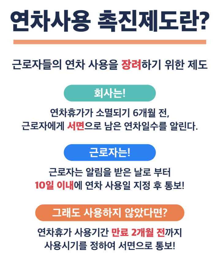 이상 기간 꼭 놓치지말고 연차촉진제도 공지를 진행하시기 바랍니다.