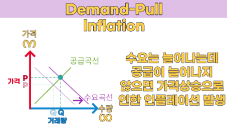 예컨대 정부가 침체에 빠진 경기를 부양하기 위해서 정부지출을 확대하고 세율을 인하하는 등의 급격한 확대 재정정 책을 시행하였다면 총수요가 증가하여 수요견인 인플레이션이 발생할 수 있다.