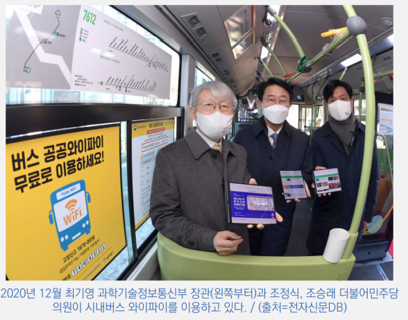 시내버스에 구축하여 무료로 이용하는 공공 와이파이서비스