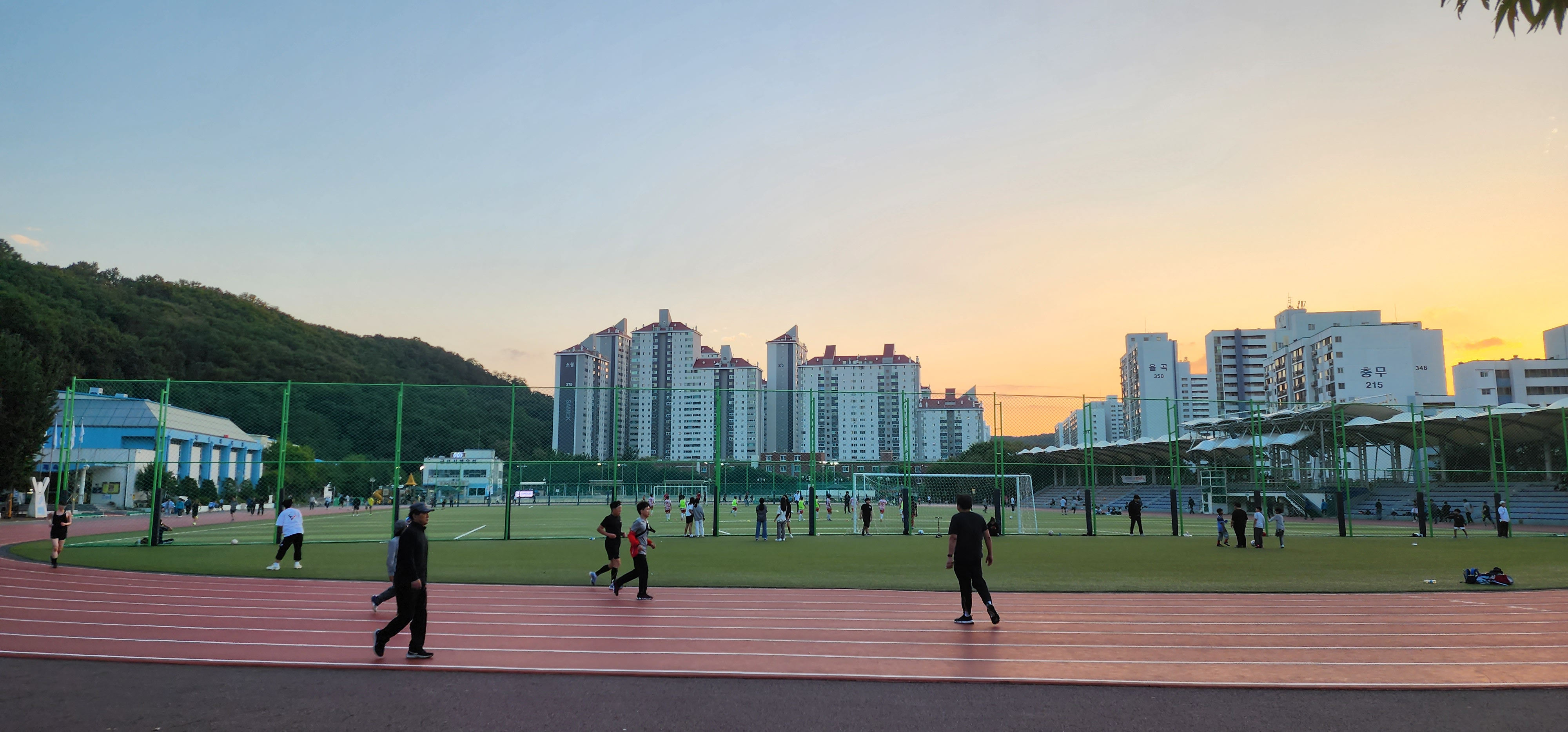 농구장 및 족구장 그리고 조깅트랙이 아주 잘 갖추어져있었습니다. 이제 어느덧 완연한 가을 저녁이라 그런지 건강관리를 위해 가족단위로 운동을 하는 사람들이 아주 많았습니다.