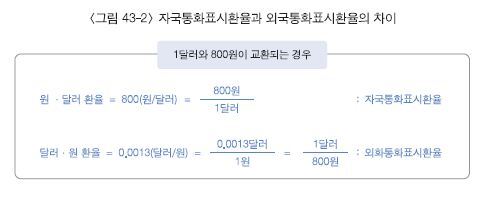 미국에 가서 우리 돈 3,500원을 낸다면 어떤 상점 주인도 받아주지 않을 것이다. 외국과 거래를 성사시키기 위해서는 자국 화폐를 다른 나라의 화폐로 바꾸는 것이 선행되어야 한다. 이처럼 국가 간의 거래에 있어서 화폐의 교환이 먼저 이루어져야 거래가 이뤄질 수 있고, 이때 자국화폐와 타국화폐의 교환비율을 환율이라 한다.