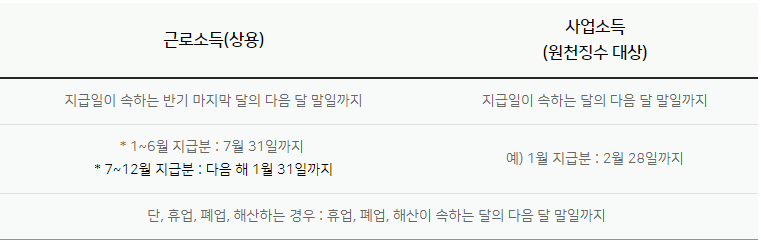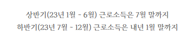 7 / 31일까지 근로소득 1~6월 분에 대해서 제출