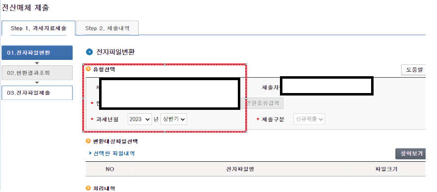 아래는 홈택스에서 제출하는 방식입니다 ( 보통 일정규모 이상이 되는 법인에서는 파일변환 방식으로 제출)