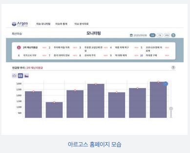 아르고스(Argos)는 국회도서관이 보유한 입법·정책·학술 자료 등 양질의 데이터와 의정 지원에 필요한 소셜미디어 데이터를 융합·분석한 데이터 기반의 신개념 의회 지원 모델이다. 국회 안팎의 자료를 분석해서 현안과 입법 과제를 발굴하는 한편 분석 데이터 언급량 추이, 쟁점(이슈) 히스토리, 연관어 맵, 긍정·부정 감성어 등으로 구성하여 제공한다. 아르고스는 시스템을 통하여 다양한 입법 수요 등을 미리 파악하고 추적한다는 점에서 과거와 다른 능동적이고 선제적인 서비스로 분류된다.