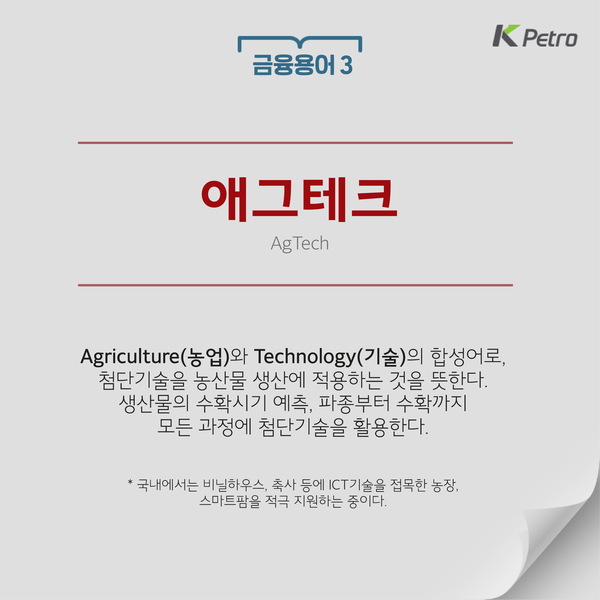 세 번째 금융용어, 경제용어는 바로 애그테크(AgTech)랍니다.